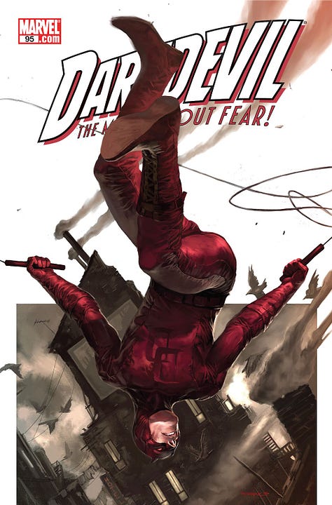 Ed Brubaker, maître du polar en devenir, va prendre la suite directe de Bendis et continuer à confronter L’Homme-Sans-Peur à une société de plus en plus cynique et corrompue, où la fragilité de sa double identité devient sa plus grande faiblesse. Plus que sa situation de non-voyant ou ses capacités à affronter les pires criminels dans des duels sauvages au corps-à-corps, c’est surtout la santé mentale de Matt Murdock qui est mise à rude épreuve dans ces épisodes.