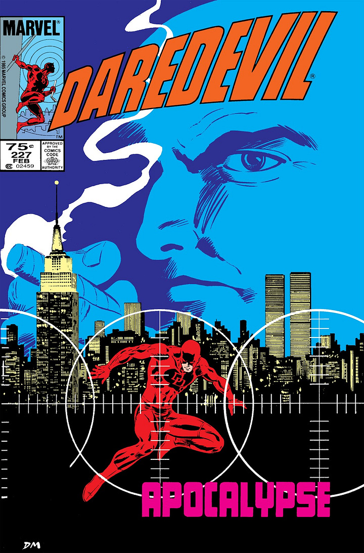 Miller s’approprie ensuite un vilain tout droit sorti des pages de The Amazing Spider-Man : Wilson Fisk, alias Le Caïd, baron du crime organisé sur le retour, qui va trouver le Diable de Hell’s Kitchen et son alter ego en robe noire d’avocat en travers de sa route. Le mafieux trouve ici un nouveau terrain de jeu dont il ne sortira plus jamais, devenant un antagoniste majeur de Tête-à-Cornes. Si Daredevil possédait déjà quelques ennemis réguliers bien à lui, comme le Hibou, le Gladiateur ou l’Homme-Pourpre, il va faire face à sa némésis avec Bullseye ; apparu pour la première fois dans le numéro #131, en 1976 ; que Frank Miller va développer à son plein potentiel. Tueur froid et méthodique, ce tireur d’élite sans pitié à la solde de Wilson Fisk va constamment tourmenter L’Homme-Sans-Peur, remettant en cause son sens moral dans une mécanique comparable à celle qui unit Batman et le Joker. Le point culminant de cette relation étant indiscutablement la mort d’Elektra des mains de Bullseye, et les fortes suspicions de ce dernier quant à l’identité secrète de Daredevil.
