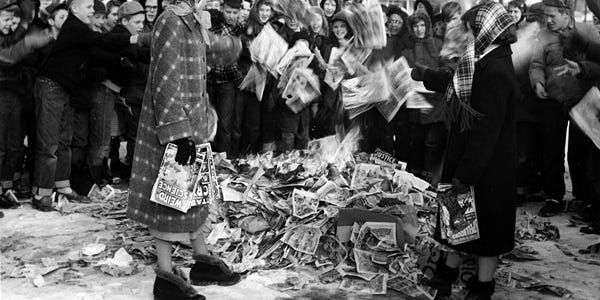 Bien avant que l’on accuse le Heavy Metal, les Jeux de Rôles ou le Jeu Vidéo de transformer les adolescents en créatures immorales et sanguinaires, les comics ont fait l’objet d’une campagne de désinformation menée par des politiques, des intellectuels et des religieux adeptes de raccourcis faciles et préférant s’en prendre à l’art plutôt que de regarder en face l’échec d’un système qu’ils entretiennent pour préserver leur petit confort.