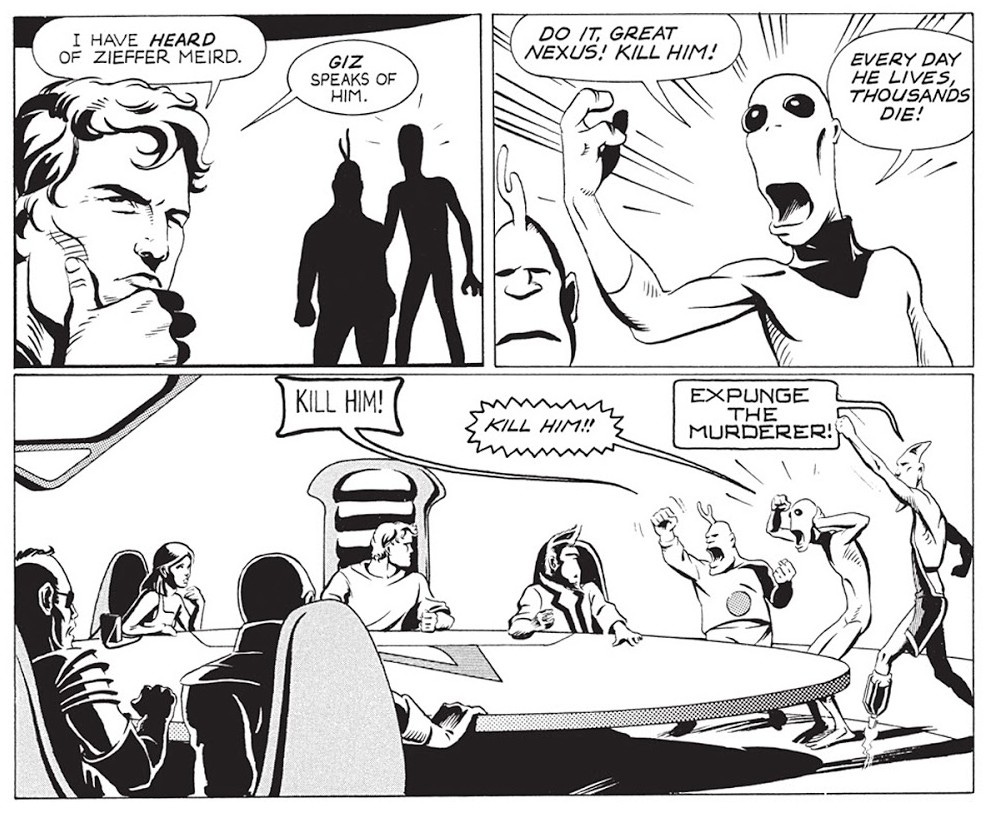 Ainsi, quand en 1981 débarque Nexus, de Mike Baron et Steve Rude, chez Capital Comics, il est fort probable que quelques malheureux n’y aient absolument pas prêté attention. Après tout, des histoires avec types en moule-burnes qui volent dans l’espace et balancent des rayons lasers à tour de bras, il y en a plein !