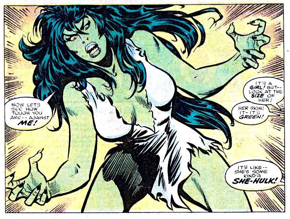 Voulant assurer les arrières de Marvel Comics en matière de propriété intellectuelle, Stan Lee prend les devants et demande au dessinateur John Buscema de l’aider à créer une version féminine de Hulk. C’est ainsi que Jennifer Walters apparaît en novembre 1979 dans le premier numéro de The Savage She-Hulk.