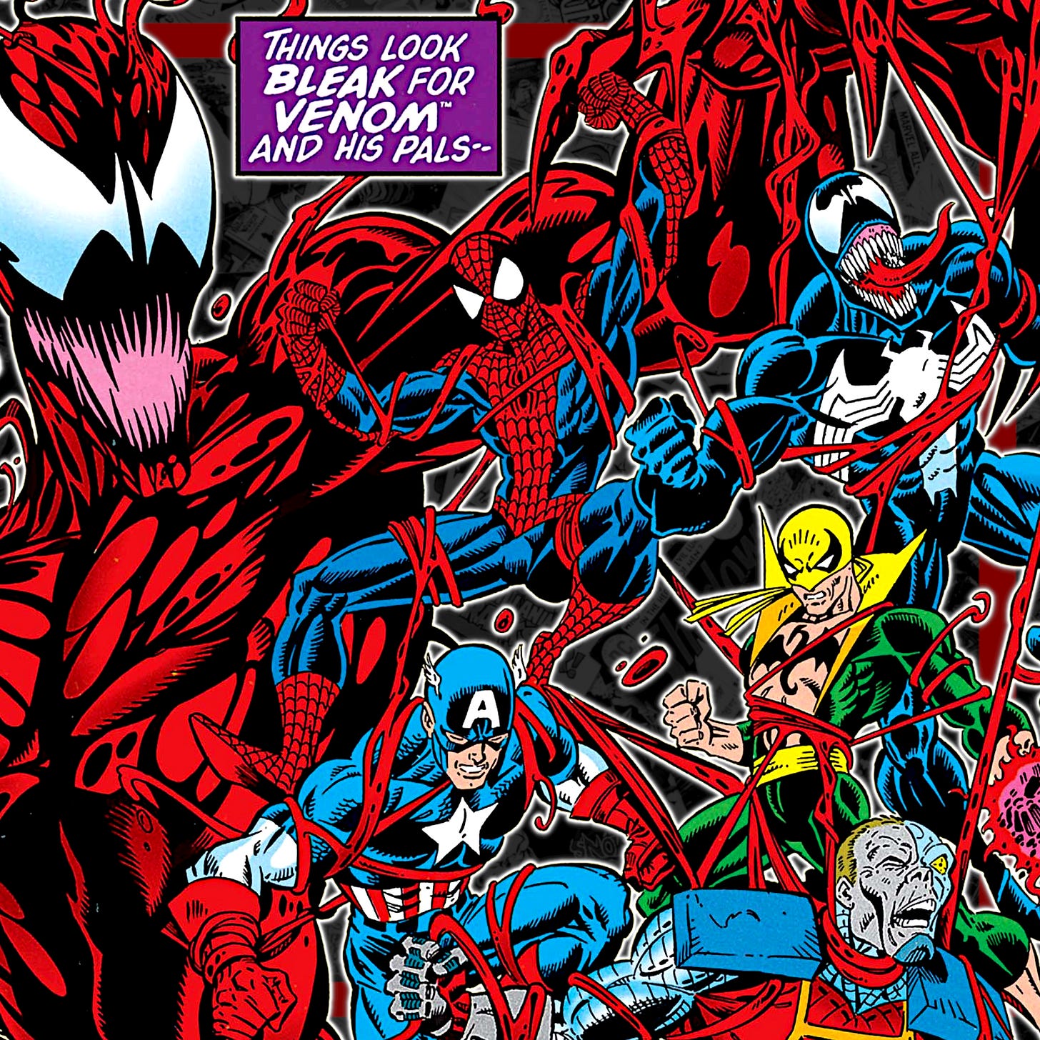 À force de traîner son symbiote gluant un peu partout, notre bon vieux Eddie va finir par engendrer une progéniture peu fréquentable. Outre Scream, Phage, Riot, Lasher, Agony, ou plus tard l’Anti-Venom ; le plus célèbre rejeton de Venom est sans conteste Carnage, qui a commis ses premiers méfaits dans le trois-cent-soixante-et-unième numéro de The Amazing Spider-Man, en 1992.