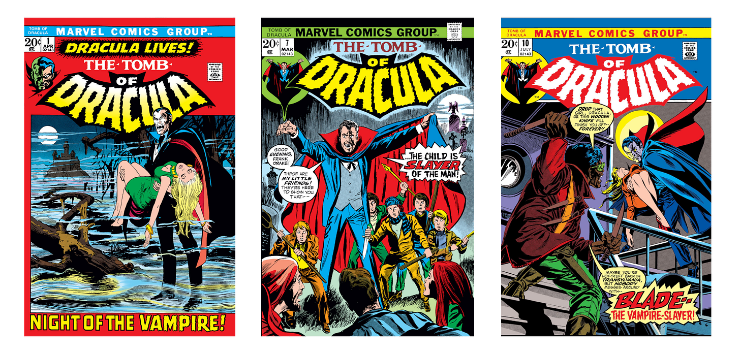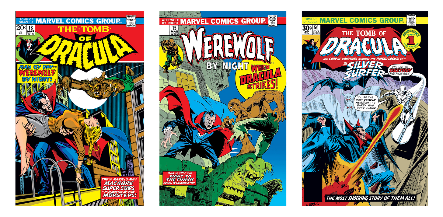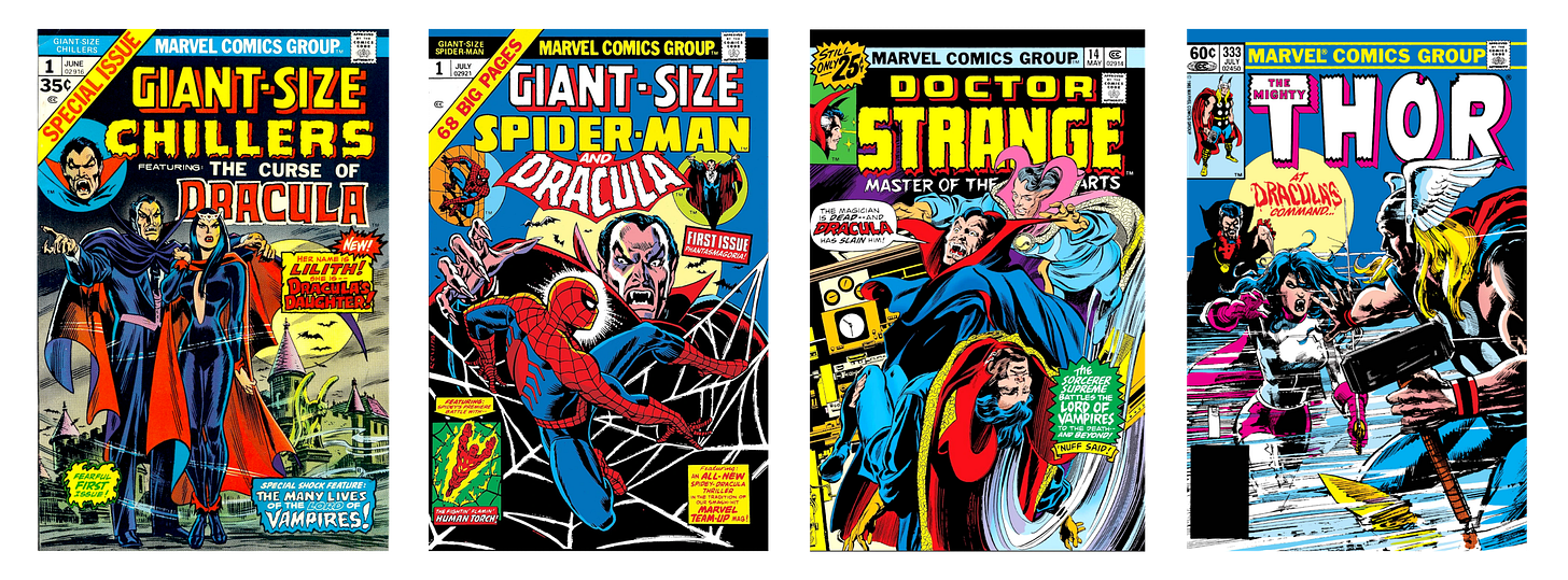 L’univers du Dracula de Marvel s’étoffe rapidement, puisque le Comte trouvera des ennemis récurrents et même quelques alliés au fil de ses aventures, avant de devenir la vedette d’autres publications : d’abord avec le magazine en noir et blanc Dracula Lives ! en 1973, dont le format échappant au Comics Code Authority permettait aux auteurs d’aller plus loin dans l’horreur et la suggestivité, puis dans Giant-Size Chillers, rapidement renommé Giant-Size Dracula, dans lesquels Roy Thomas, Gene Colan et une longue liste d’auteurs enrichissent le background du vampire en prenant plus ou moins de liberté vis-à-vis du mythe original.