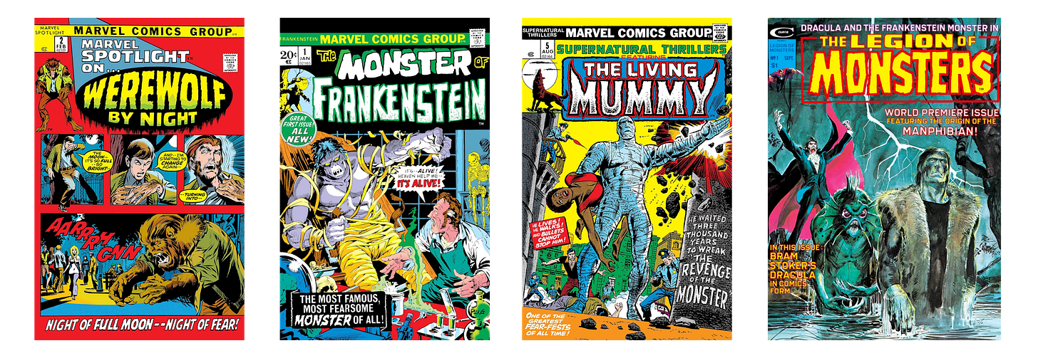 Si aujourd’hui, je me concentre sur la série Tomb of Dracula, il faut quand même souligner que l’éditeur va rapidement essorer le filon, puisqu’en seulement quelques mois, on va voir débarquer dans son catalogue le loup-garou Jack Russel, d’abord dans Marvel Spotlight, puis dans sa propre série Werewolf by Night, le monstre de Frankenstein, puis The Living Mummy dans les pages de Supernatural Thrillers, et enfin la Légion des Monstres, une équipe composée de plusieurs de ces créatures.