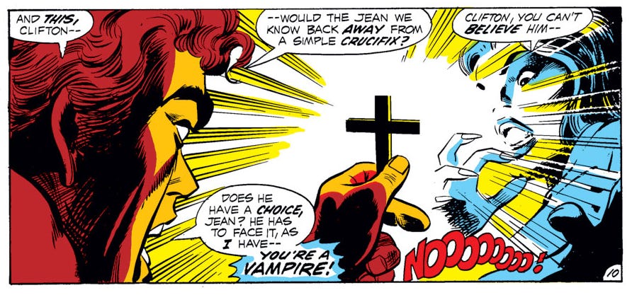 Ainsi, à peine quelques mois après cette mise à jour du Code, Morbius apparaît dans les pages du cent-unième numéro de The Amazing Spider-Man. Surnommé “le Vampire-Vivant”, le personnage est déjà une forme de pied-de-nez au Comics Code, et son statut assez flou de super-vilain costumé victime de ses propres expériences lui permettra de passer assez facilement entre les mailles du filet de la censure.
